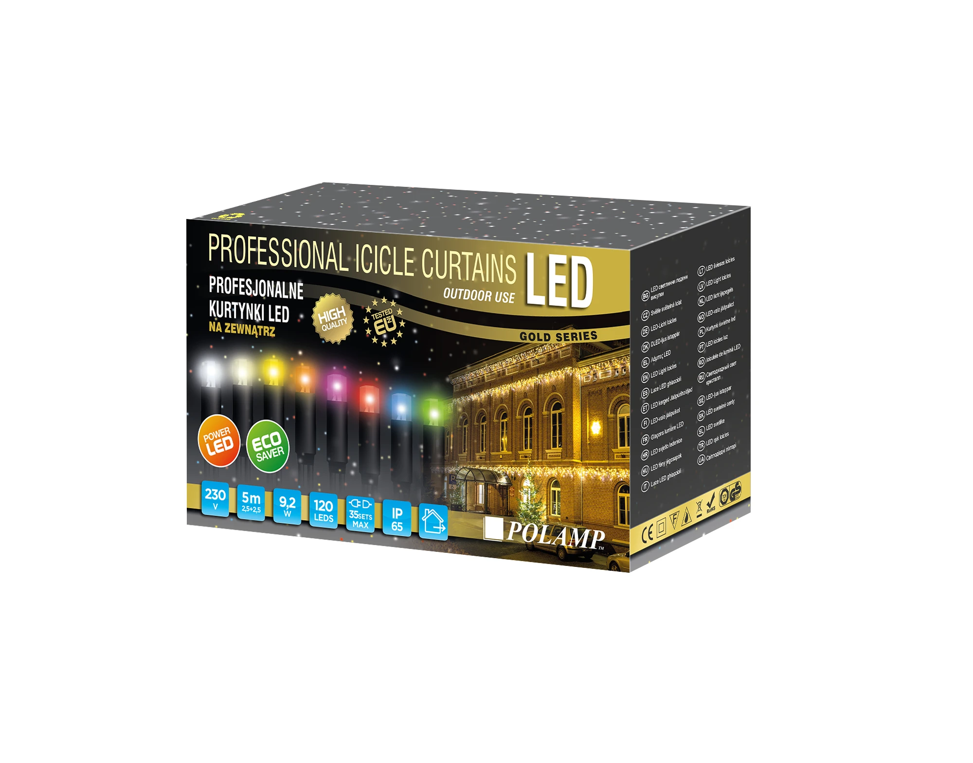 Kurtynka prof LED żółta 5m kabel czarny POLAMP kolekcja zlota